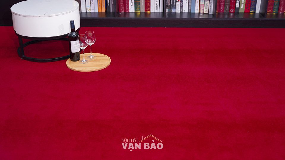 Thảm cuộn lông xù trơn màu đỏ